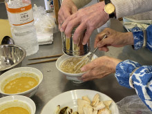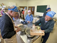2023年10月、本庄市の小島南自治会館で開かれた「防災訓練&健康フェア」に出席する飯塚議員(中央)と吉田信解市長(一番左)