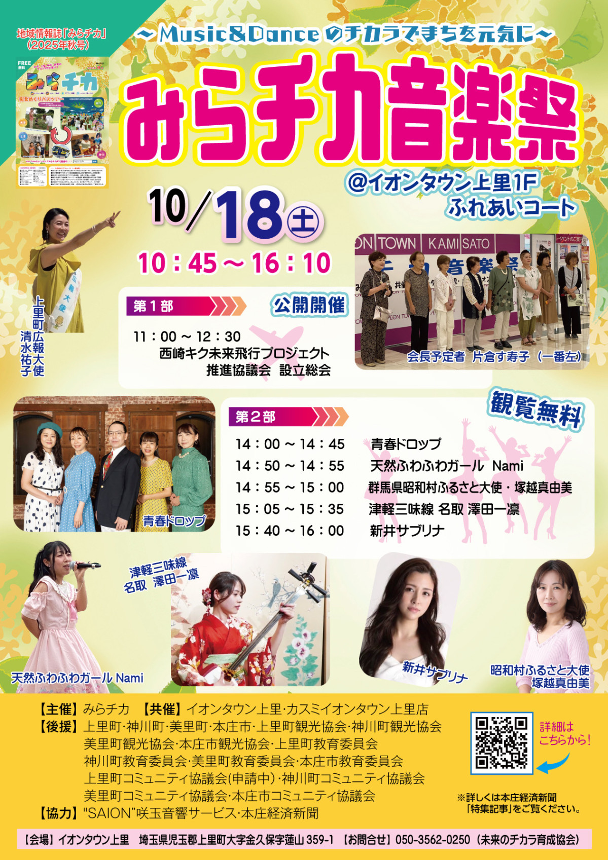 主催は地域情報誌を年4回発行する「みらチカ」、共催はイオンタウン上里、カスミイオンタウン上里店。