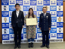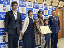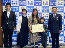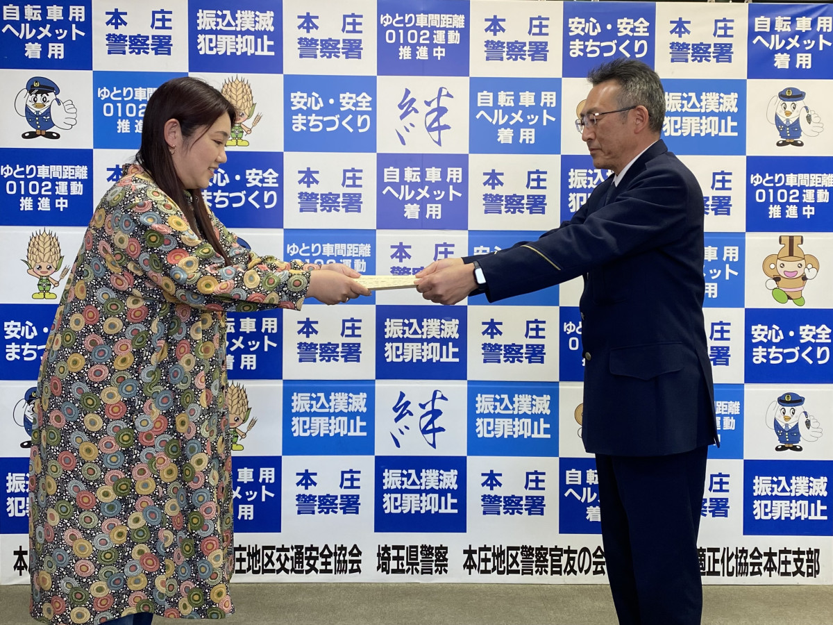 坂内信之本庄警察署長から感謝状を受け取る田島翔子さん