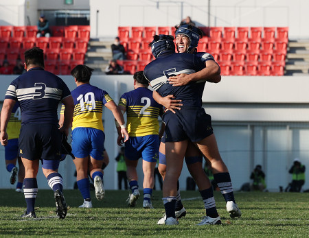 第105回全国高校ラグビー大会最終日は7日、大阪・花園ラグビー場で決勝が行われ、桐蔭学園(神奈川第1)が京都成章(京都)を36―15で下し、3大会連続6度目の優勝を果たした。 【時事通信社】