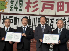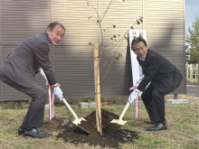 桜沢晃神川町長と窪田裕之杉戸町長は今回、地球温暖化対策の推進に向けて内容を拡充した新たな相互交流協定書を締結し、記念植樹を行った。両町は今後、「埼玉県森林CO2吸収量認証制度」の認証取得も目指す。