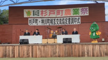 神川町と杉戸町は11月1日、まちの駅・道の駅「アグリパークゆめすぎと」(杉戸町才羽)で相互交流協定書調印式と記念植樹を行った。