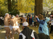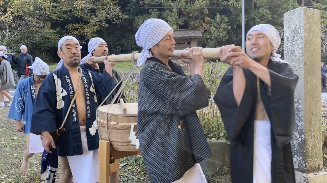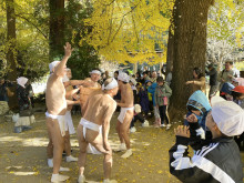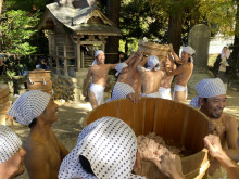 同行事は、ふんどし姿の氏子が赤飯を四方八方へまき散らす「はだか祭り」として知られている。祭りの起源は1713年(江戸時代中期)と伝わり、古くは旧暦の9月29日に行われていた。現在は毎年11月19日に開催し、地元の秋の風物詩として定着している。