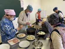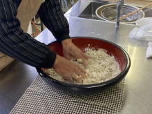 七本木手打ちそば愛好会による「カレー南蛮そば」作り