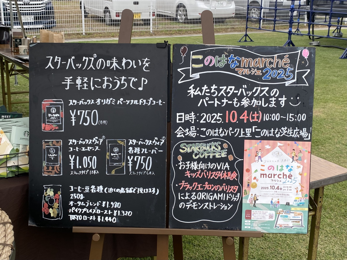 「このはなマルシェ」に出店したスターバックスコーヒーに掲出された案内ボード