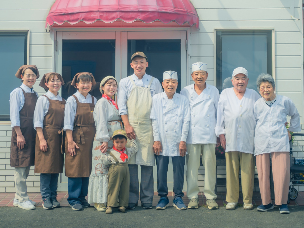 「パンと菓子の店マロン」の田端慶太郎社長とスタッフ