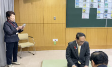 大野元裕埼玉県知事が10月20日、「西崎キクと埼玉県の女性偉人たち展」が開かれている上里町立郷土資料館(上里町七本木)を訪れ、山下博一町長と「西崎キクかるた」で対戦した。