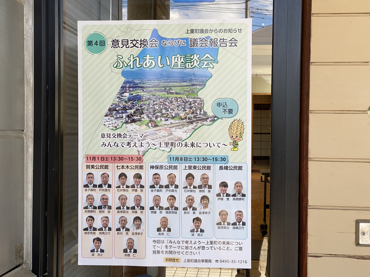 上里町議会が11月1日、賀美公民館と七本木公民館で「みんなで考えよう~上里町の未来について~」をテーマに「ふれあい座談会」を開いた。