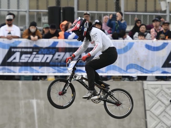本庄西中学校(本庄市千代田4)3年生でBMXレーシング選手の澤田茉奈さんが11月2日、名古屋で行われた「2025アジアBMXレーシング選手権」で2部門を制した。