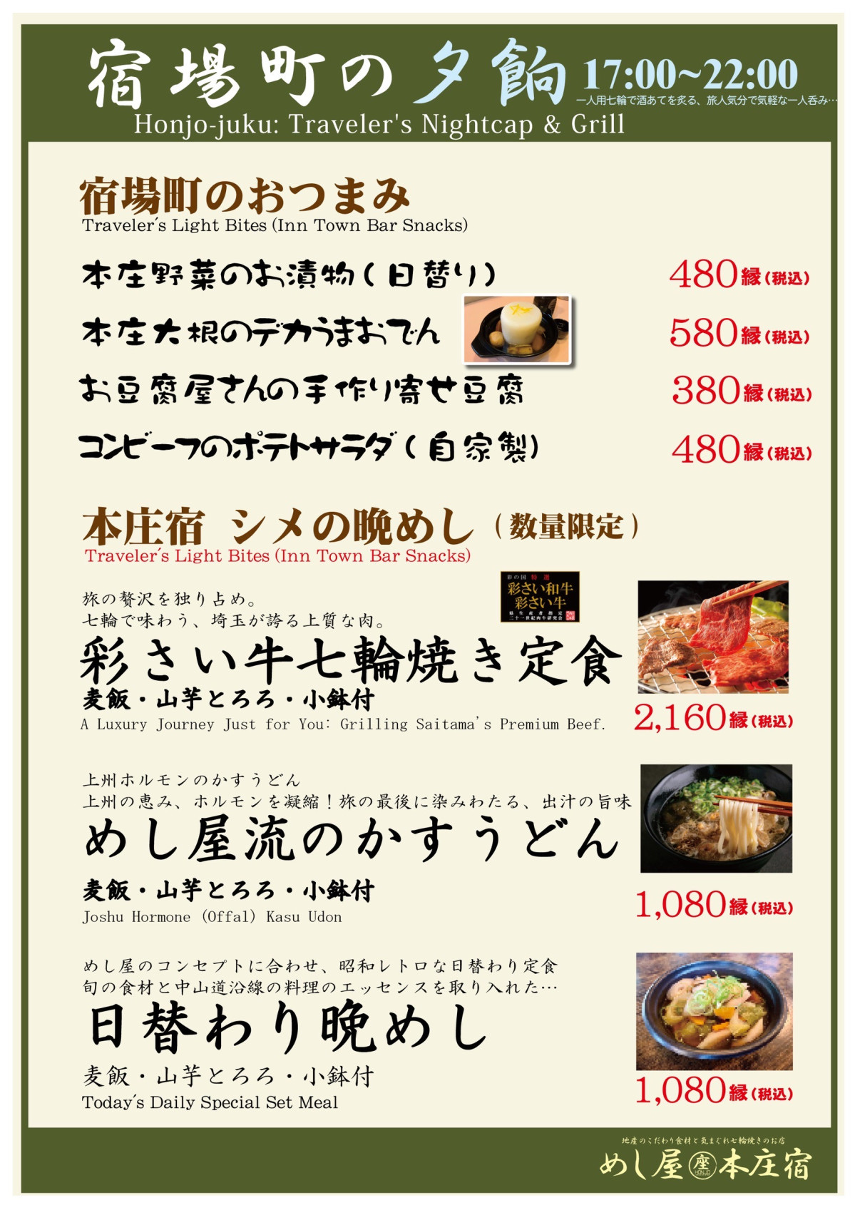 「めし屋 本庄宿」のメニュー