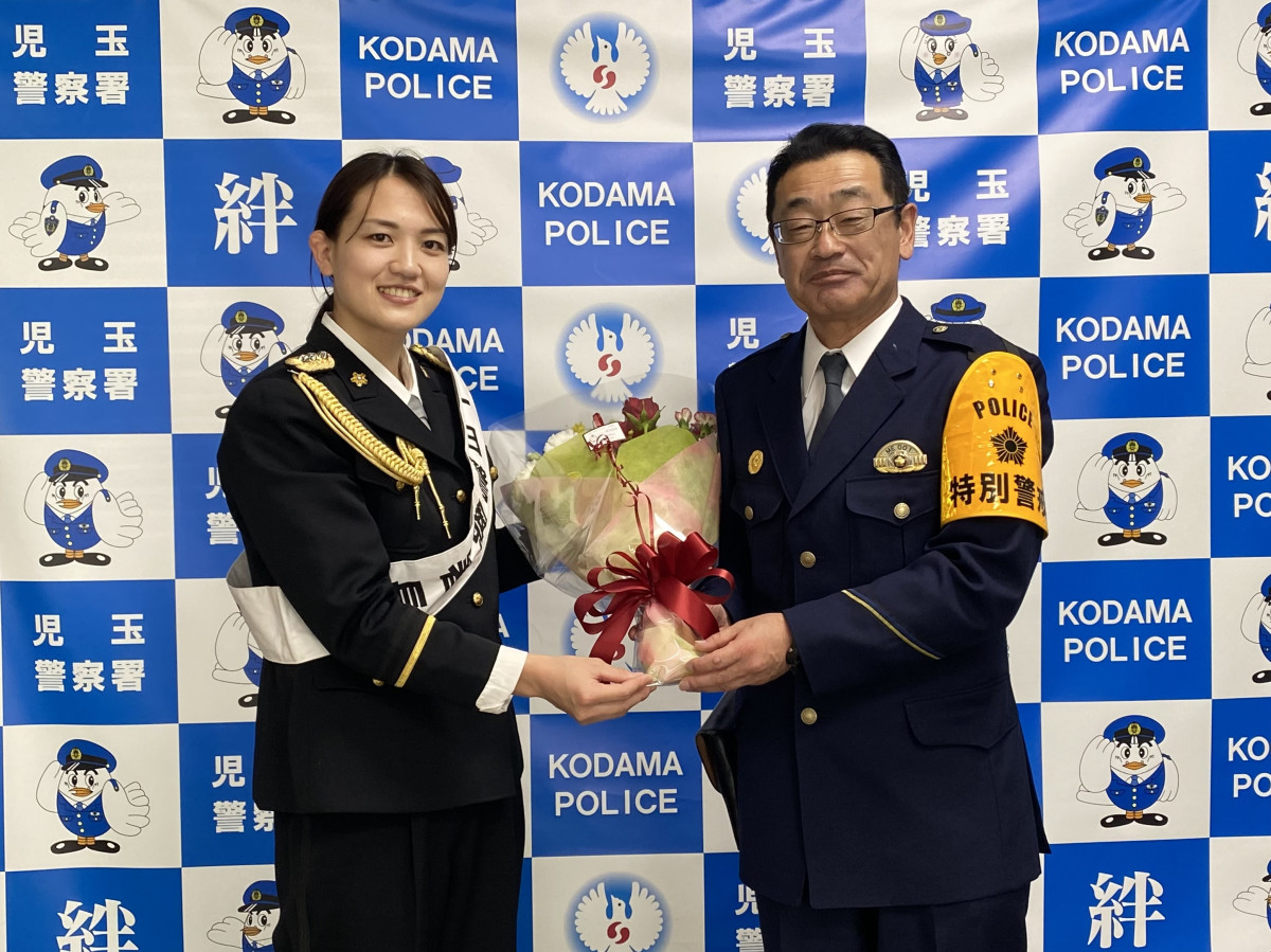 東京五輪・女子柔道70キロ級金メダリストの新井千鶴さんが11月16日、児玉警察署の一日警察署長を務めた。