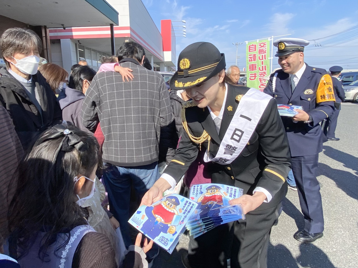 東京五輪・女子柔道70キロ級金メダリストの新井千鶴さんが11月16日、児玉警察署の一日警察署長を務めた。