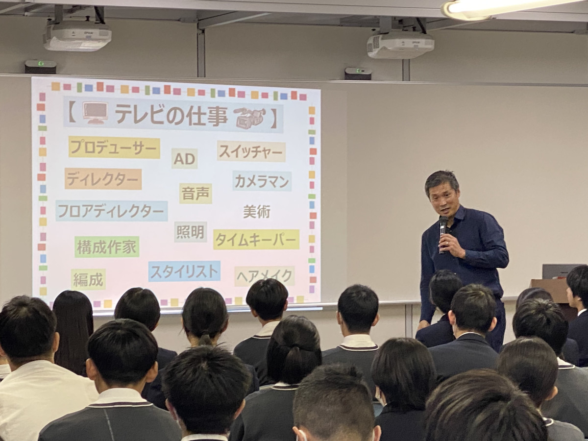 テレビ朝日(東京都港区)の社員・吉平(よしひら)将英さんが11月21日、本庄第一中学校(本庄市仁手)で「ニュースができるまで」をテーマに出前授業を行った。