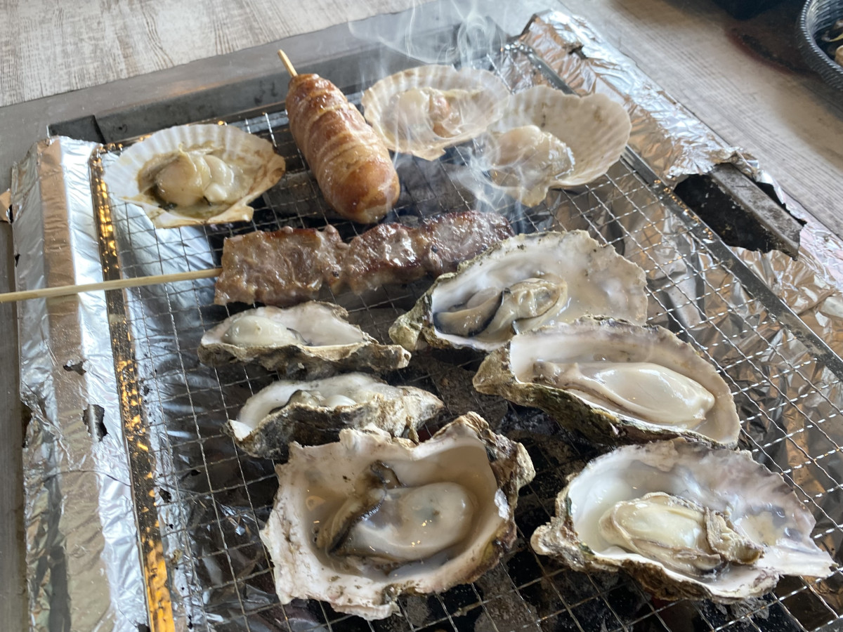出張カキ小屋「牡蠣奉行」で炭火を使って焼くカキ