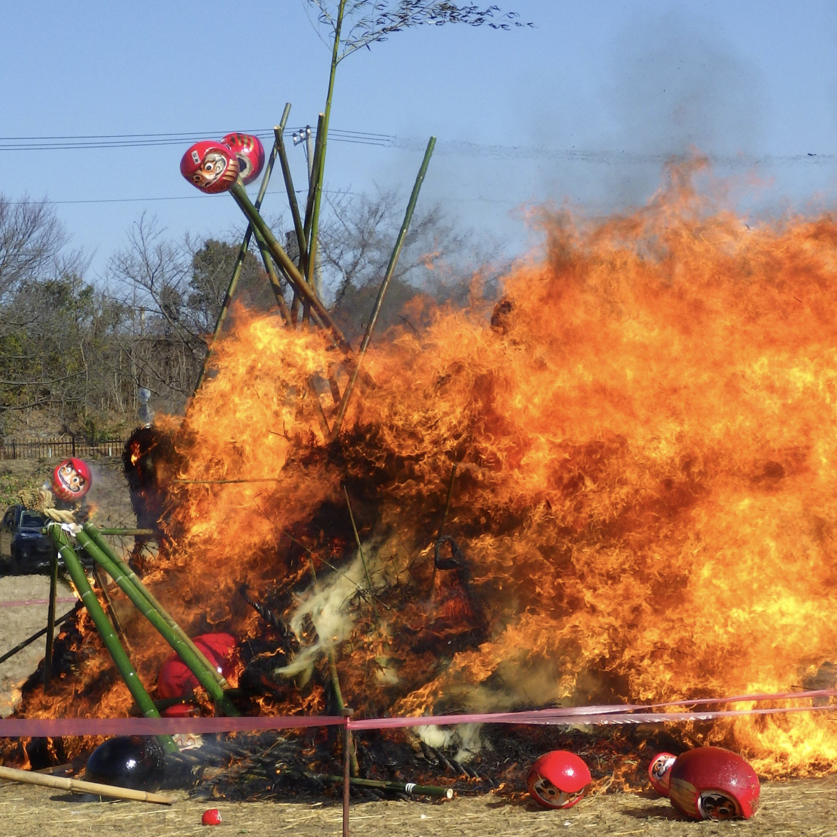 勢いよく立ち上がる炎に思いを託し、無病息災を願う「どんど焼き」