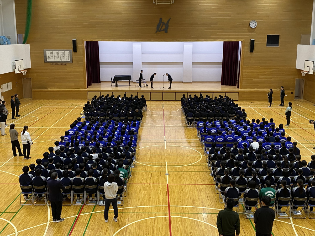 総合建設業の八木建設(本庄市中央2)が本庄市立本庄東中学校(日の出4)に椅子330脚を寄贈し、3月2日、体育館で贈呈式が開かれた。