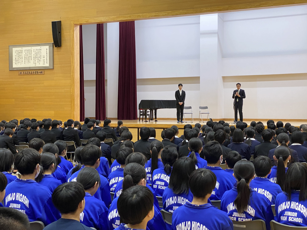 総合建設業の八木建設(本庄市中央2)が本庄市立本庄東中学校(日の出4)に椅子330脚を寄贈し、3月2日、体育館で贈呈式が開かれた。