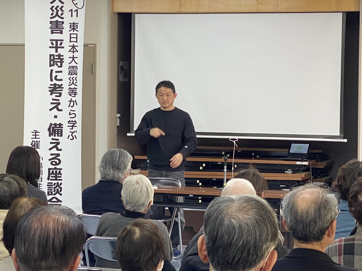 東日本大震災などから学ぶ 「大災害平時に考え・備える座談会」が3月8日、小島南自治会館(本庄市小島南1)で開かれた。