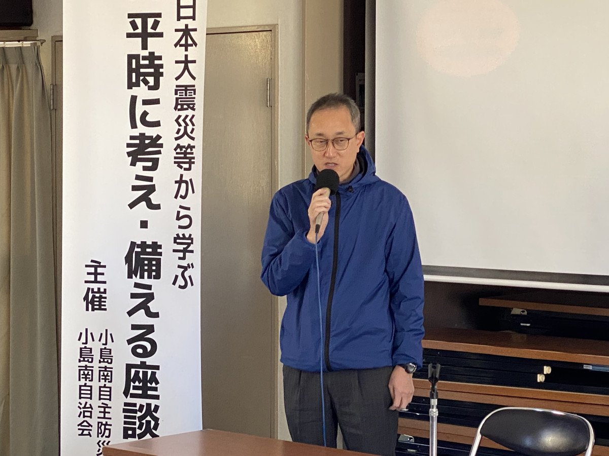 東日本大震災などから学ぶ 「大災害平時に考え・備える座談会」が3月8日、小島南自治会館(本庄市小島南1)で開かれた。