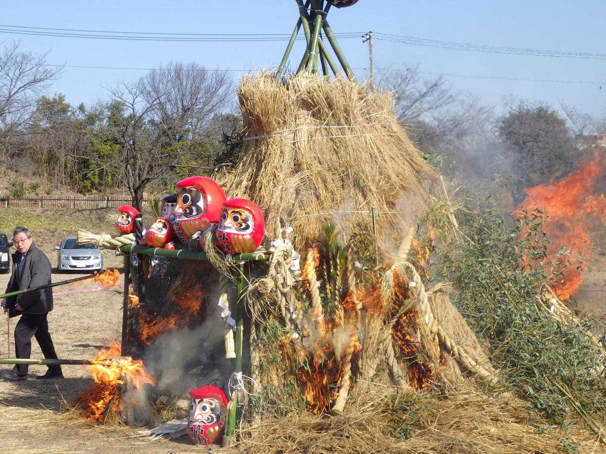 無病息災を祈る伝統行事「どんど焼き」が1月18日、堤調節池グラウンド(上里町堤)東側駐車場で開かれた。