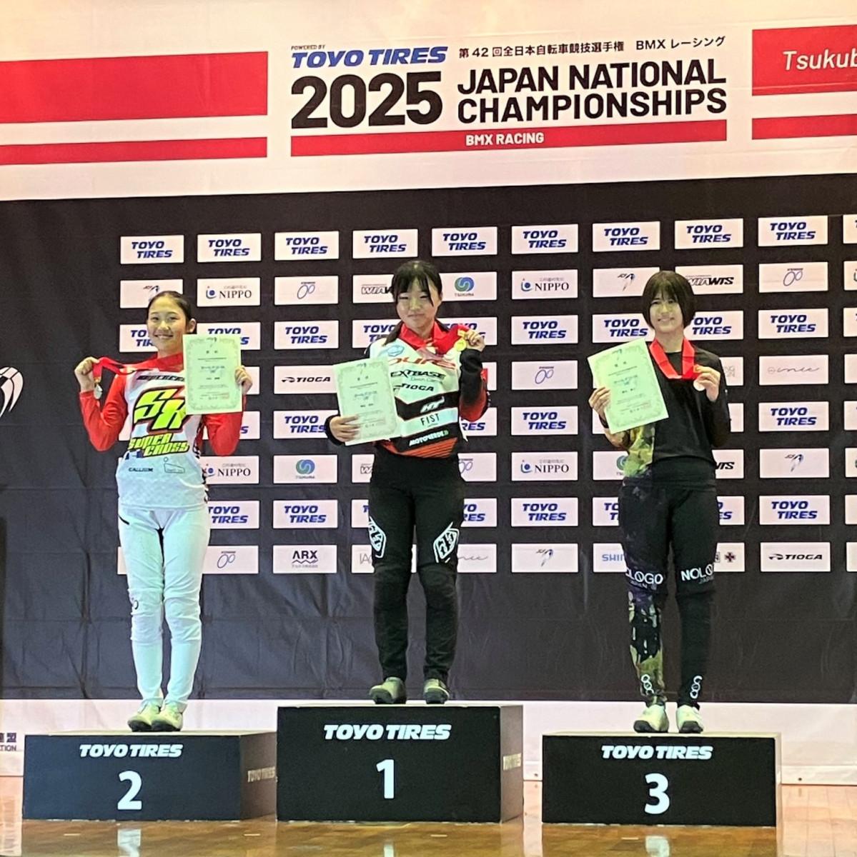 本庄西中学校(本庄市千代田4)3年生でBMXレーシング選手の澤田茉奈さんが10月11日・12日に行われた全日本自転車競技選手権BMXレーシングの2部門で優勝した。